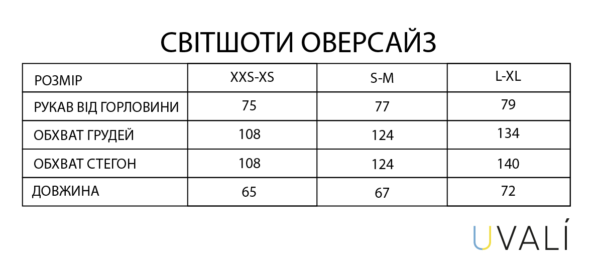 Розміри (oversize): XXS/XS, S/M, L/XL